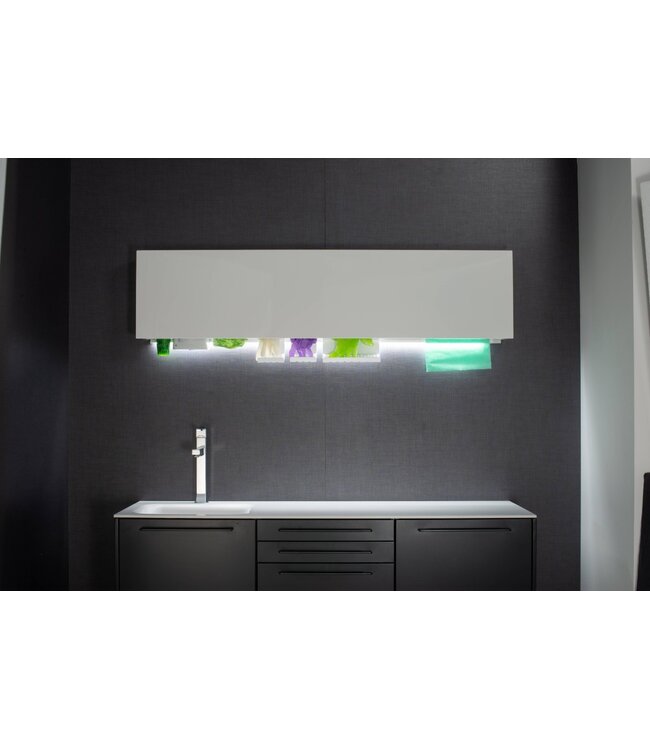 The reduced depth of only 20 cm facilitates the approach and facilitates access to the dispenser, positioned in the lower part of the wall unit to repair materials from suspended particles