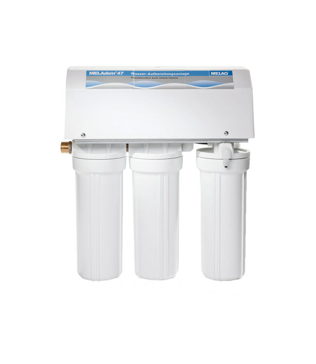 Le besoin accru qui en résulte en eau déminéralisée de haute qualité est largement fourni par le MELAdem 47 et à faible coût. L'inversion du principe physique de l'osmose est un type de traitement de l'eau extrêmement respectueux de l'environnement. MELAdem 47 produit environ 3 à 5 litres d'eau d'alimentation par heure, de sorte que plusieurs stérilisateurs à vapeur MELAG peuvent être fournis en même temps