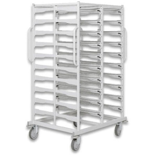 Les chariots sont constitués de tubes métalliques carrés enduits de poudre et conçus pour un accès facile aux modules et une bonne vue d'ensemble du contenu.