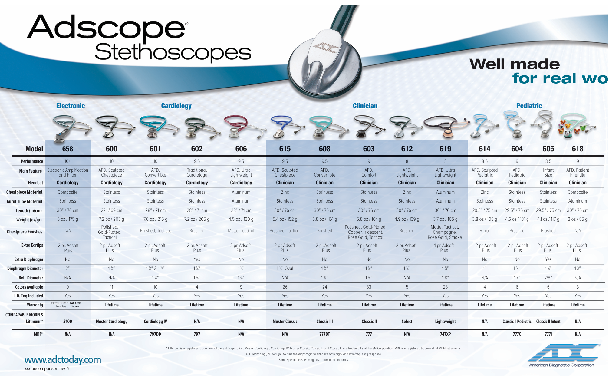 ADC Adscope stethoscoop, overzicht van alle modellen