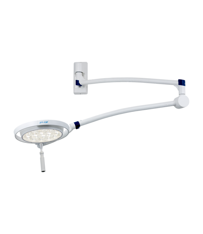 De onderzoekslamp LED 130F is een veel geziene lamp op verschillende poliklinieken in ziekenhuizen, privéklinieken, huisartsen, dierenartsen en tandartsen. De LED 130F heeft een lichtopbrengst van 70.000 lux en een instelbaar lichtveldgrootte van 13- 19cm maar is ook leverbaar als een standaard uitvoering met een vast lichtveld van 14cm.