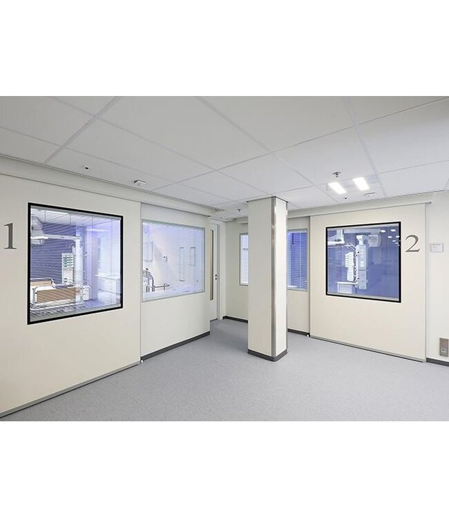 Deze deur is speciaal ontworpen voor ruimtes waar intensief bed- en rolstoelverkeer plaatsvindt. Deze schuivende hygienische deur bespaart gebruiksoppervlak en vergoot de veiligheid omdat er geen rekening gehouden hoeft te worden wat of wie er aan de andere zijde van de deur staat. Door zijn naadloze ontwerp en schuinaflopende kap trekt de deur geen stof aan en kan hij makkelijk worden gereinigd.
