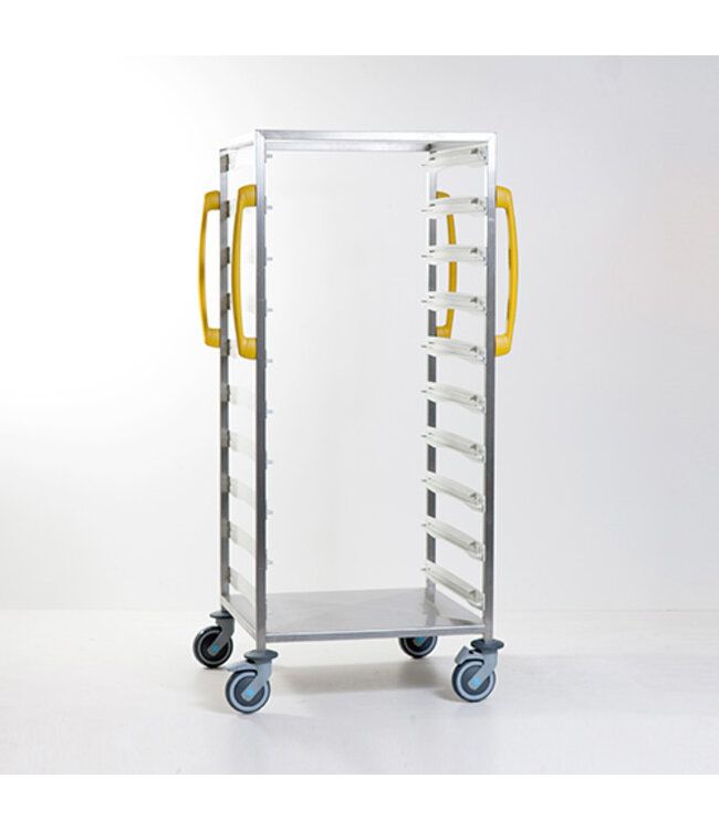 In de 600 x 400 uitvoering kunnen ook DIN transportmanden of –plateaus geplaatst worden, maar dan slechts één per niveau. Deze maatvoering is natuurlijk optimaal voor alle ISO compatibele modulaire elementen: ISO transportmanden en –plateaus, evenals modulaire ISO PC en ABS modules voor verbruiksgoederen.